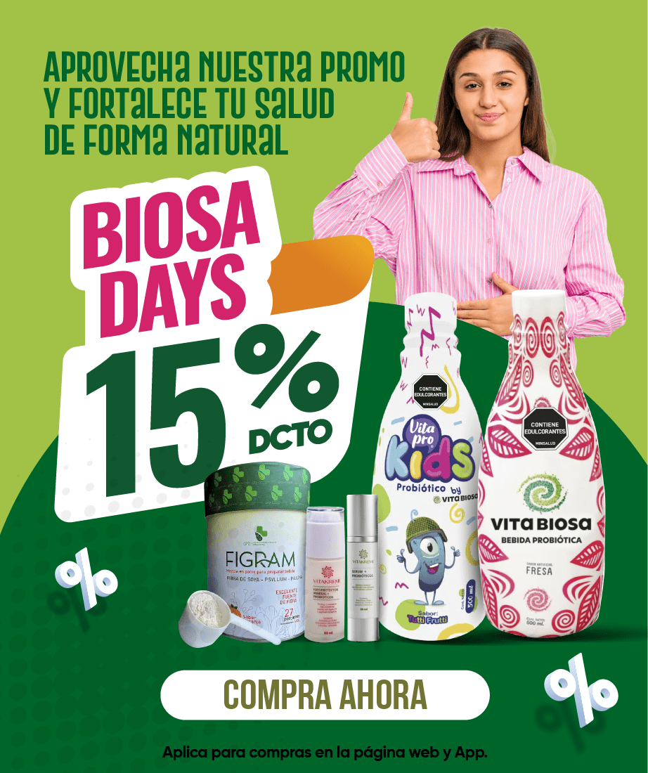 Vita Biosa contiene probióticos (microorganismos vivos – bacterias benéficas), que viven dentro de nuestro intestino.